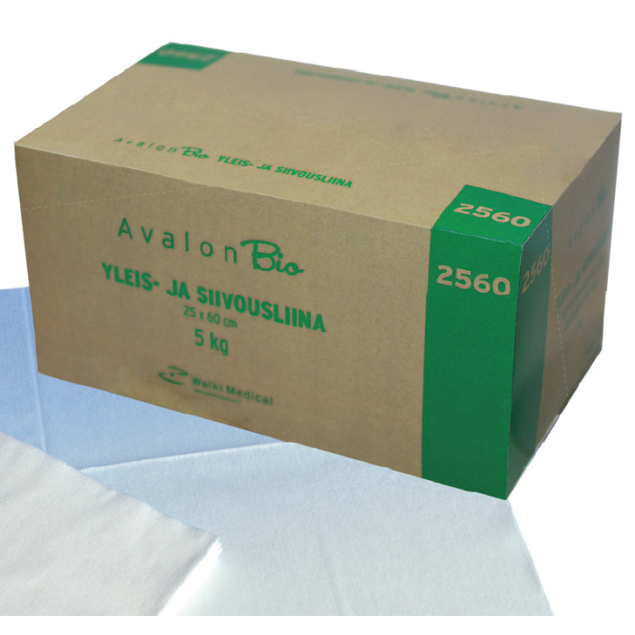 Avalon Bio on reiällinen, erittäin imukykyinen, nukkaamaton, pehmeä kuitupyyhe kaikkeen pyyhintään. Se sopii erinomaisesti esim. tasopintojen ja lattioiden pyyhintään. Pyyhkeet ovat pakattu riittoisaan viiden kilon pakkauskokoon. Sopii hyvin kaikkiin käyttökohteisiin joissa kaivataan nuukkaamatonta ja imukykyistä pyyhettä. Esim. keittiöt, koulut, sairaalat, päiväkodit, teollisuus yms.