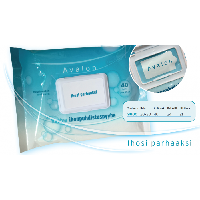 AVALON kostea ihonpuhdistuspyyhe 40kpl