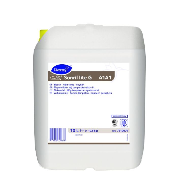 Clax Sonril lite G on tehokas korkean lämpötilan valkaisuaine. Tuotetta voidaan käyttää 70-90°C lämpötiloissa kaikentyyppisten, myös värillisten tekstiilien valkaisuun (poikkeuksena villa ja nailon). Veritahraisten tekstiilien pesu aloitetaan ilman valkaisuainetta (aika: 0-7 minuuttia).