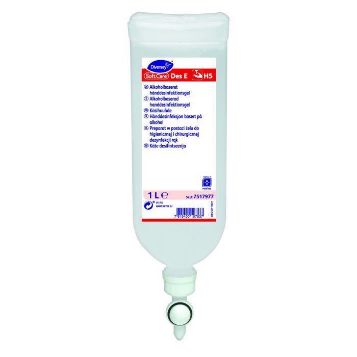 Soft Care Des E on alkoholipohjainen (71.58%) käsien desinfiointiaine vedetöntä ihon desinfiointia varten. Soft Care Des E sopii käytettäväksi kaikilla alueilla, mukaan lukien terveydenhuolto ja elintarviketeollisuus.