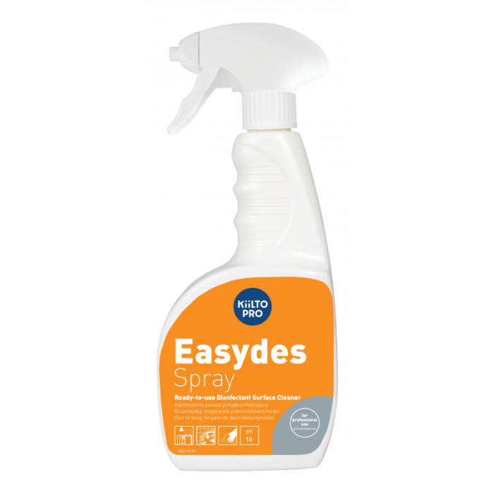 Easydes spray on alkoholia sisältävä mikrobisidisesti tehokas, käyttövalmis ja nopeavaikutteinen pintadesinfektioaine, jolla on hyvät pesevät ominaisuudet.