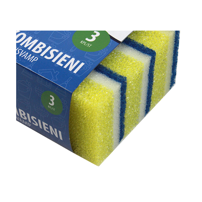 Kombisieni on kaksipuolinen pesusieni, joka on suunniteltu puhdistamaan muonipuolisesti erilaisia käyttökohteita. Sienen sileä puoli sopii herkille pinnoille kuten astioille. Tumma, karkea puoli irrottaa hyvin pinttynyttä likaa. Pakkaus sisältää 10 kappaletta värikkäitä pesusieniä.
