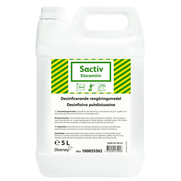 Sactiv Kloramiini on kehitetty pintojen desinfioivaan puhdistukseen sairaaloissa ja muissa korkeaa hygieniaa vaativissa kohteissa.
