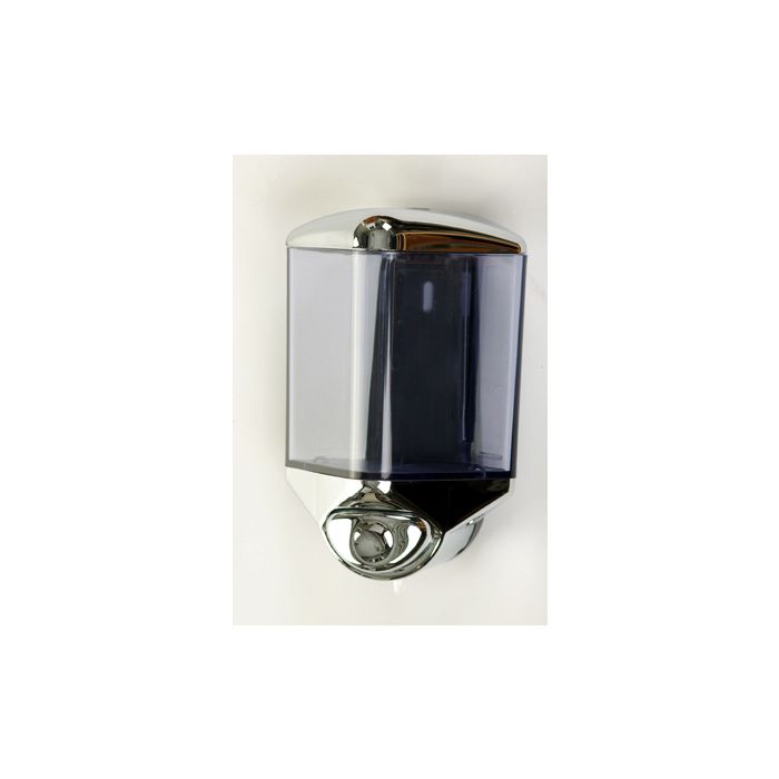 Seinään kiinnitettävä täytettävä saippua-annostelija.