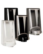 Annostelijaan on saatavana myös valkoinen tai metalloitu standardikansi, mutta pelkkä valkoinen pullo metalloidussa seinätelineessä on jo itsessään tyylikäs ja moderni ratkaisu.