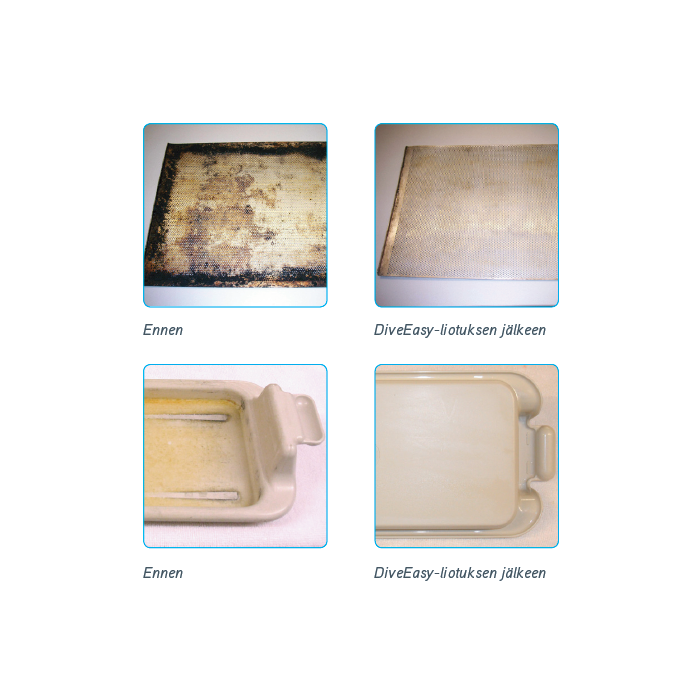 Suositellaan käytettäväksi Diverseyn Suma DiveEasy-liotusaltaan kanssa.