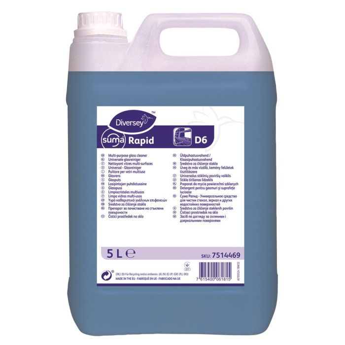 Suma Rapid D6 on käyttövalmis puhdistusaine lasipinnoille ja muille koville, vettä sietäville pinnoille. Puhdistusliuos levitetään pinnoille sumutinpullolla.