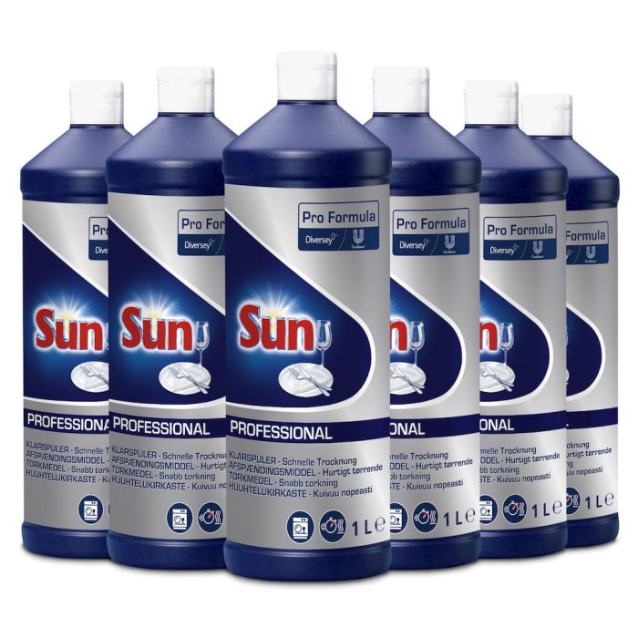 Sun Professional Huuhtelukirkaste on neutraali huuhtelukirkaste, joka soveltuu kaikentyyppisiin astianpesukoneisiin. Tuote sisältää ionittomia tensidejä, joiden ansiosta astiat kuivuvat nopeasti ja pesutulos on erinomainen sekä pehmeissä että keskikovissa vesissä.