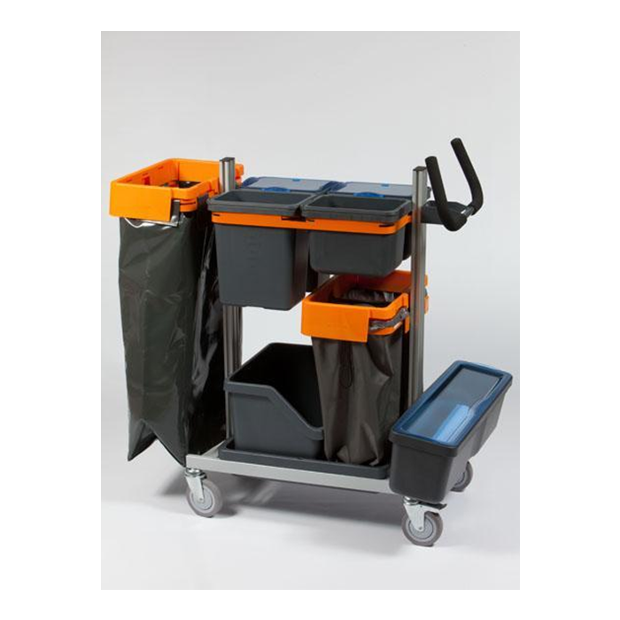 • Runsaasti säilytystilaa. Tarvikelaatikot avautuvat vaunun molemmille puolille. Jalan painalluksella kallistuvat moppilaatikot säilyttävät moppien kosteuden ja parantavat ergonomiaa.
