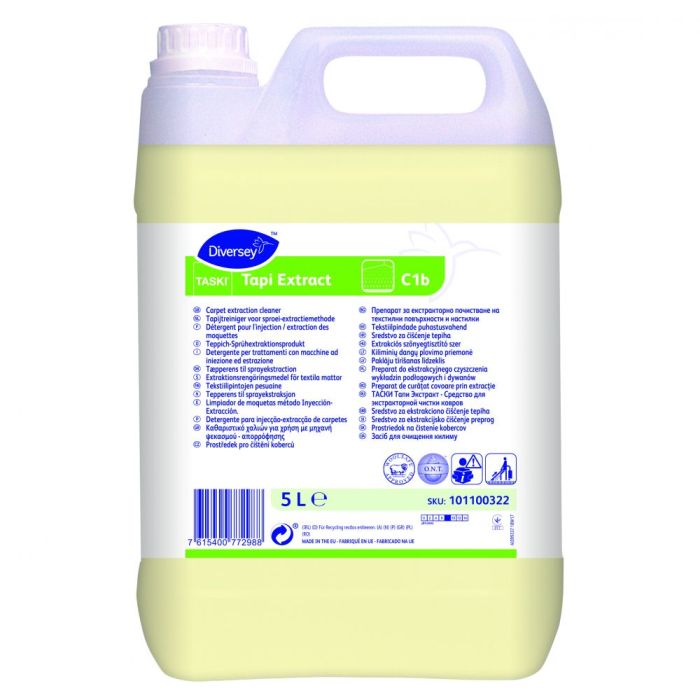 Taski Tapi Extrac on tekstiilipintojen pesuaine painehuuhtelukoneisiin. Tuotteessa on käytetty ainutlaatuista O.N.T. -teknologiaa.