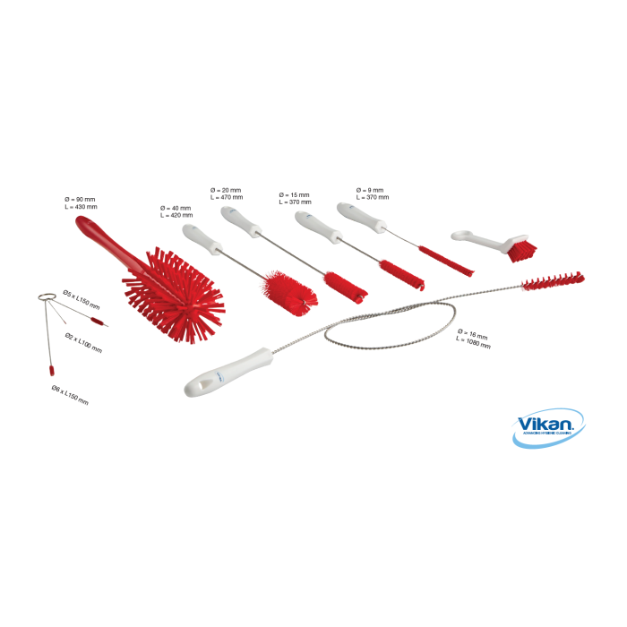 Vikan hygieniaharjasetit esim. pehmiskoniden, kahvinvalmistuslaitteiden ja mehuautomaattien pesuun ja puhdistamiseen.